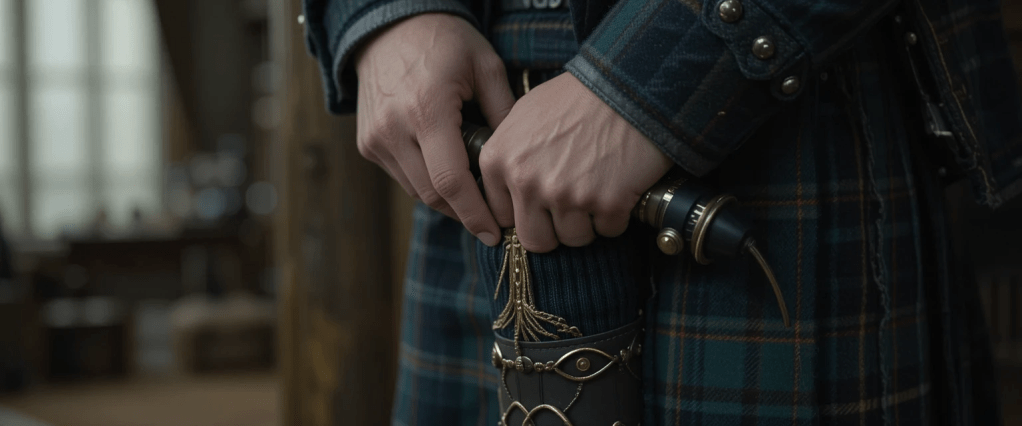 - Symbol of Honor and Courtesy: In Scottish tradition, guests entering a home were expected to show they carried no concealed weapons—hence, the sgian-dubh was worn visibly in the sock as a gesture of goodwill.