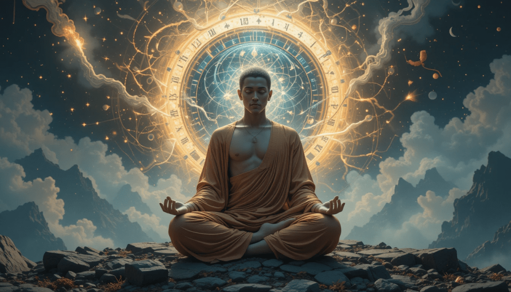 - Mystical: “In meditation, he touched an achronic silence beyond clocks and calendars.”