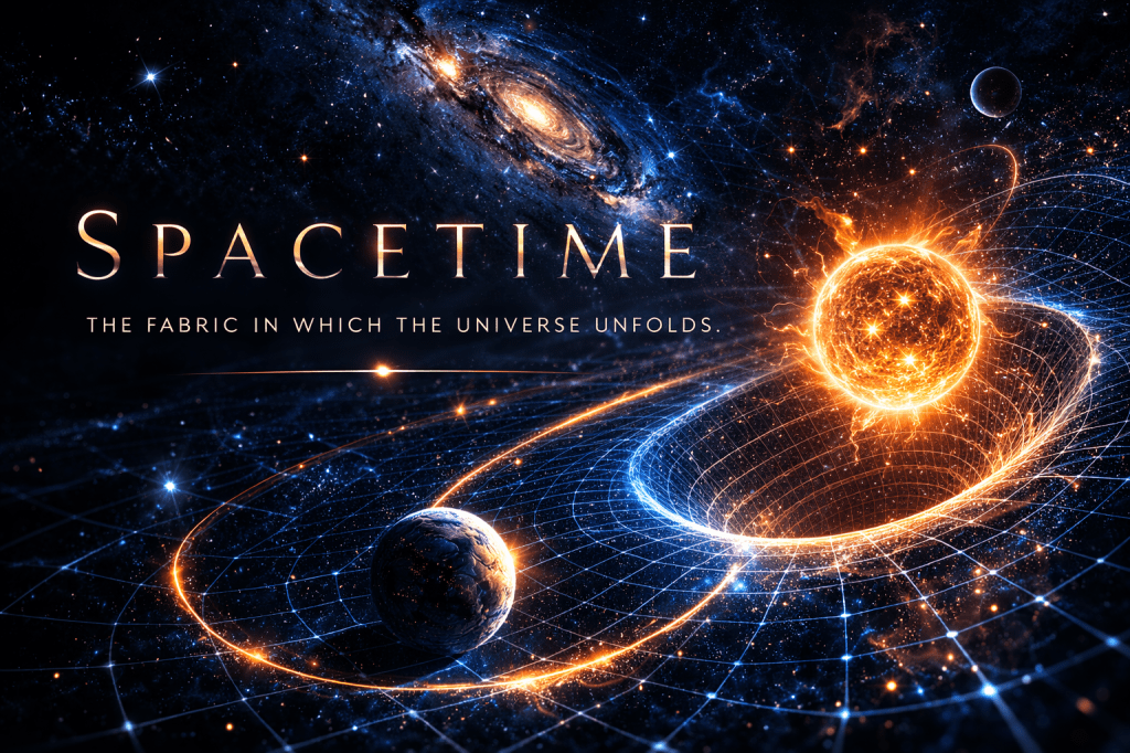 Spacetime is the fabric in which the universe unfolds.