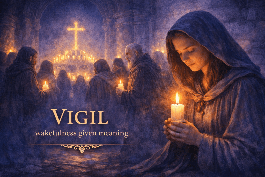 Vigil symbolizes attention sustained against darkness.